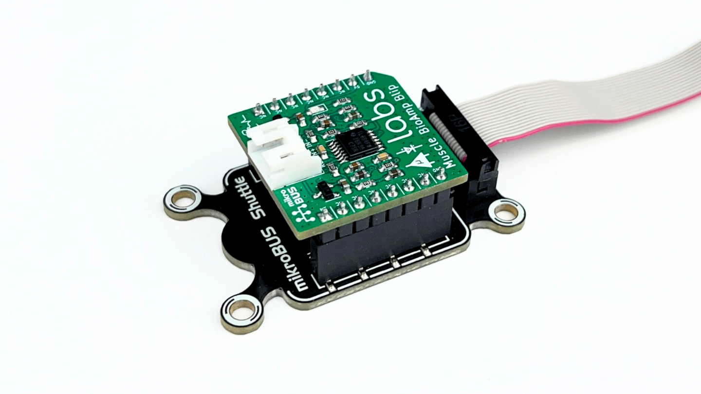 You can also connect the Muscle BioAmp Blip to any hardware that has mikroBUS™ port like mikroBUS™ shuttle, mikroBUS™ Arduino UNO Click Shield to name a few.