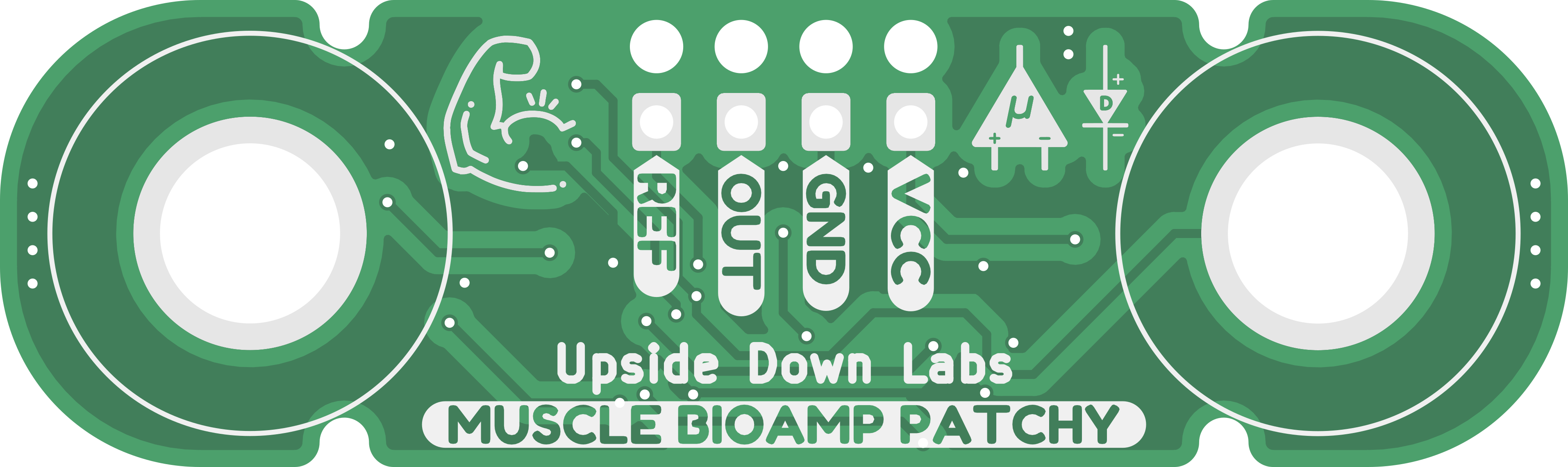 Muscle BioAmp Patchy is a wearable ElectroMyoGraphy or EMG sensor that snaps directly to gel electrodes and connects to your muscle like a patch. It comes with reverse polarity projection, power indicator, onboard snap connectors, and Upside Down Labs’ powerful BioAmp sensing technology for precise muscle signal recording. This enables you to easily integrate this sensor in your EMG- based Human-Computer Interface (HCI) easily.