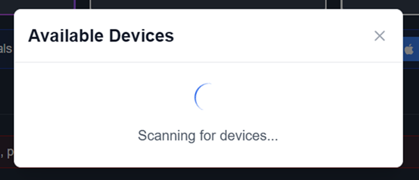 Wait for the Available Devices dialog to list your NPG device, if using multiple devices then click its link icon, for single connected device it will be detected and connected automatically.