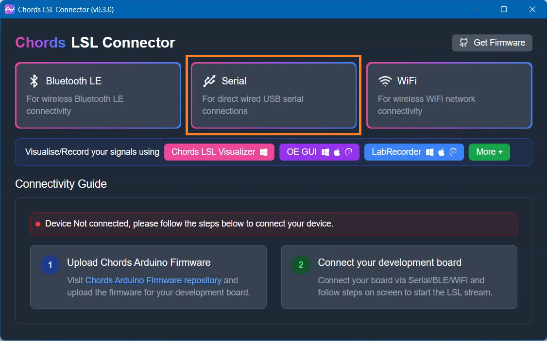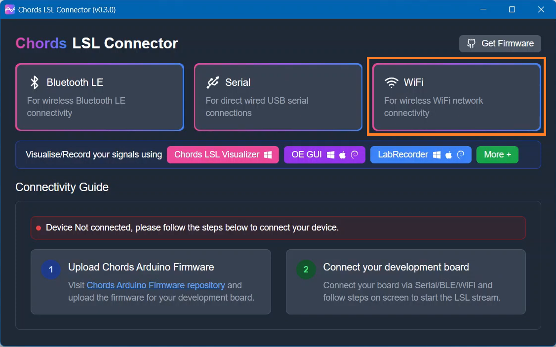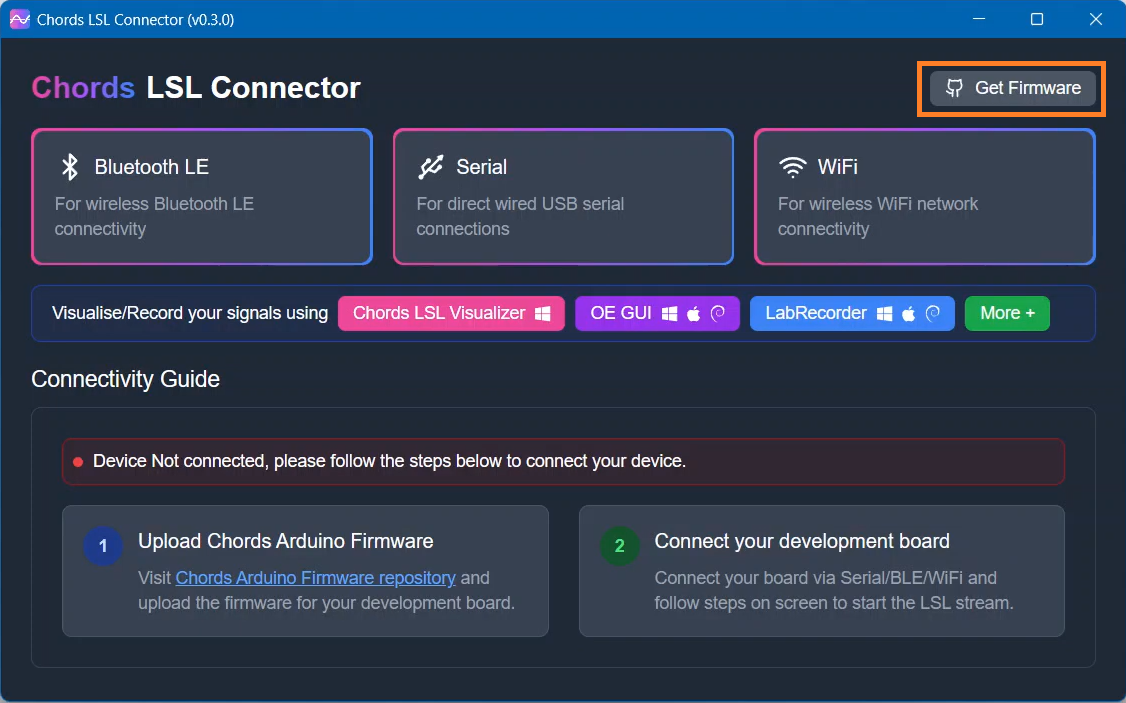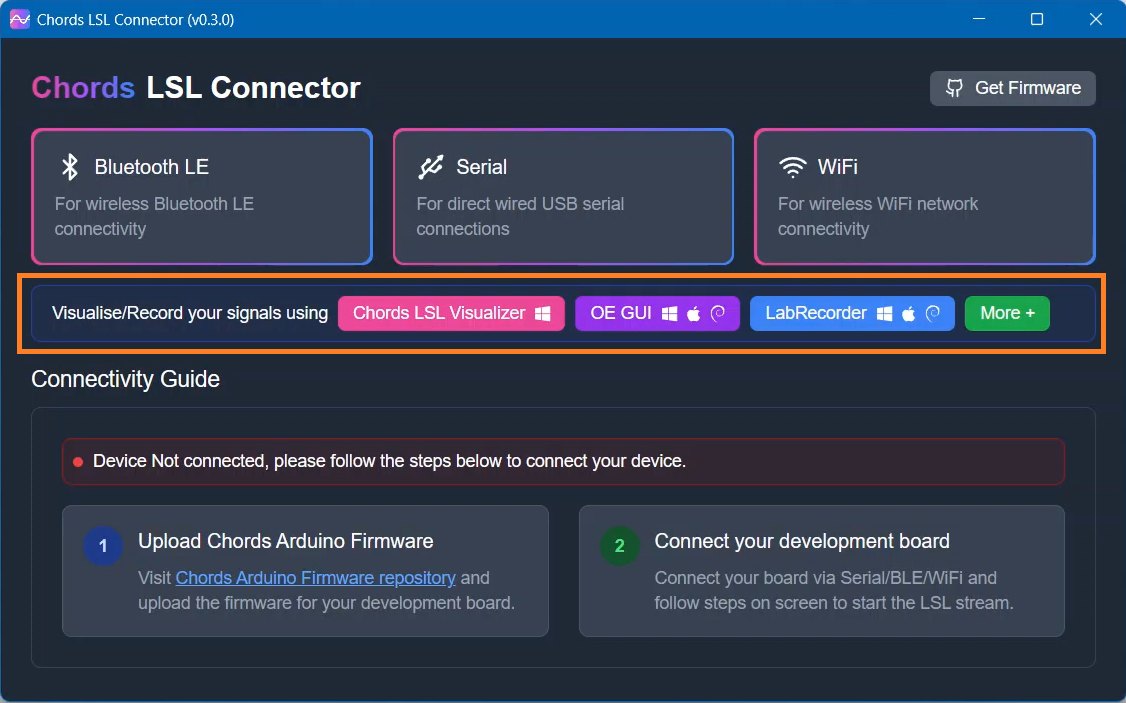 For full source code, issue tracking, and contribution guidelines, head over to the Chords-LSL-Connector GitHub repo.
